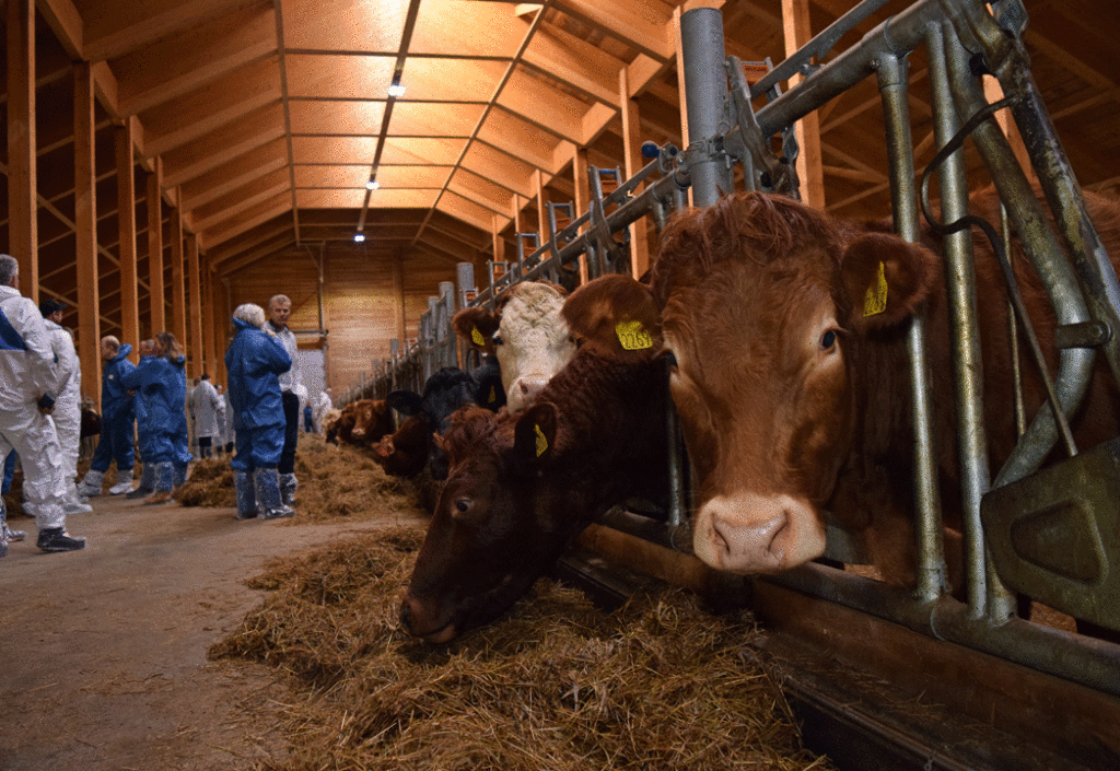 Fjøset på 1800 kvadratmeter sto ferdig i desember. Mens Terje er opptatt med å fortelle gjestene om valg og løsninger rundt oppføring av nytt fjøs, åpner Elin opp porten til kuene. Flekken og Klara er blant favorittene, som lar seg klappe og fotografere.