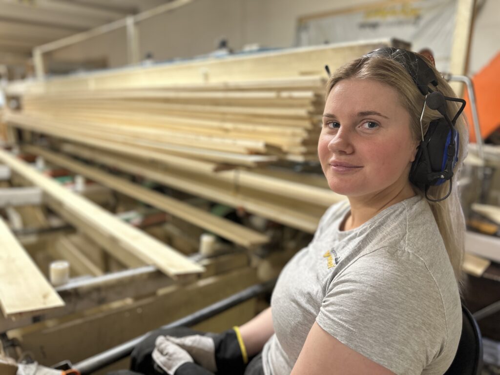 Angelica Gustafsson er operatør på høvleriet og ser til at trelasten har topp kvalitet