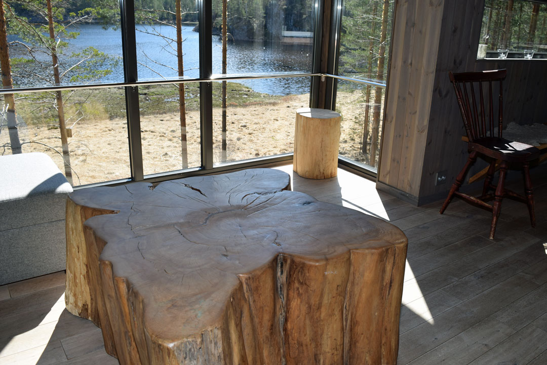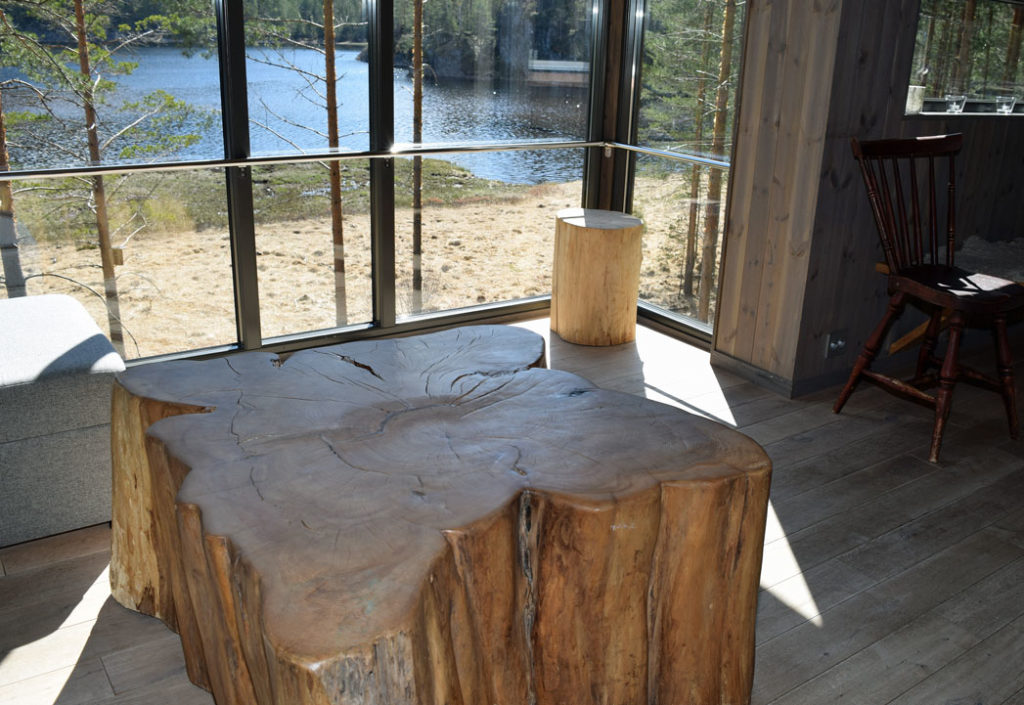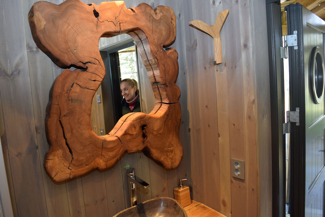 – Da de to neste hyttene ble bygget, var bookingkalenderen full. Tidspress gjorde at jeg ikke rakk å skape så mye selv, men jeg fikk laget en speilramme og et stuebord fra et 200 år gammelt tuntre i alm fra nabogården.