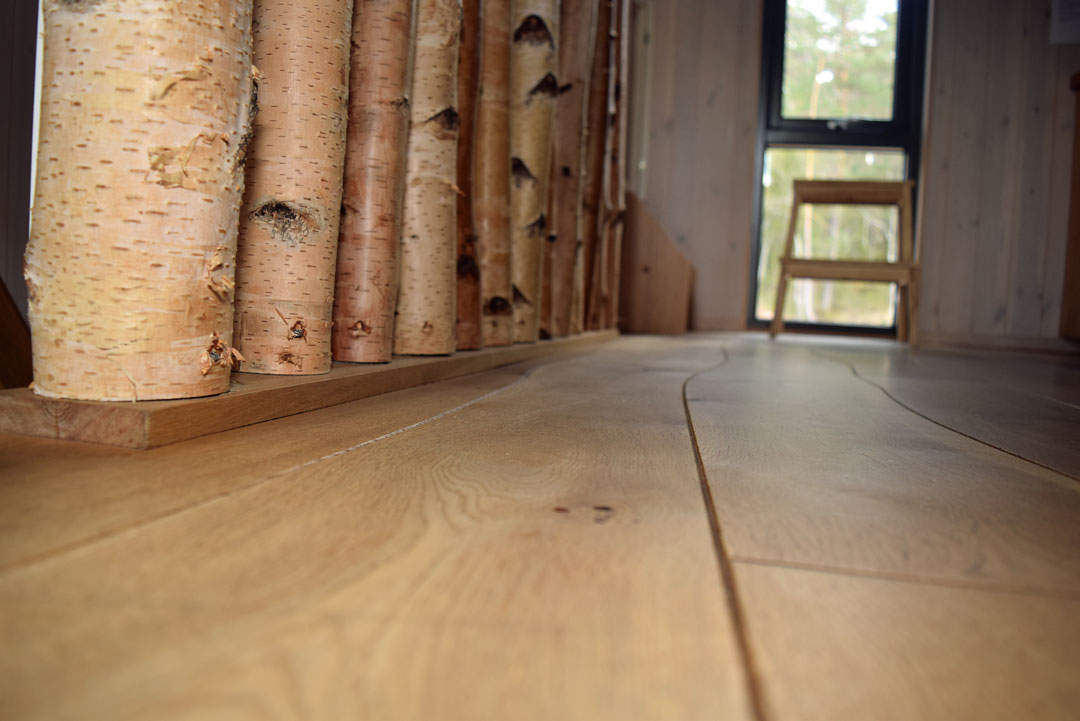 – Kjøkkeninnredningen er også av tre fra egen skog. Den er tegnet og bygd av snekkerfirma og Jens, forklarer Åse Kristine.