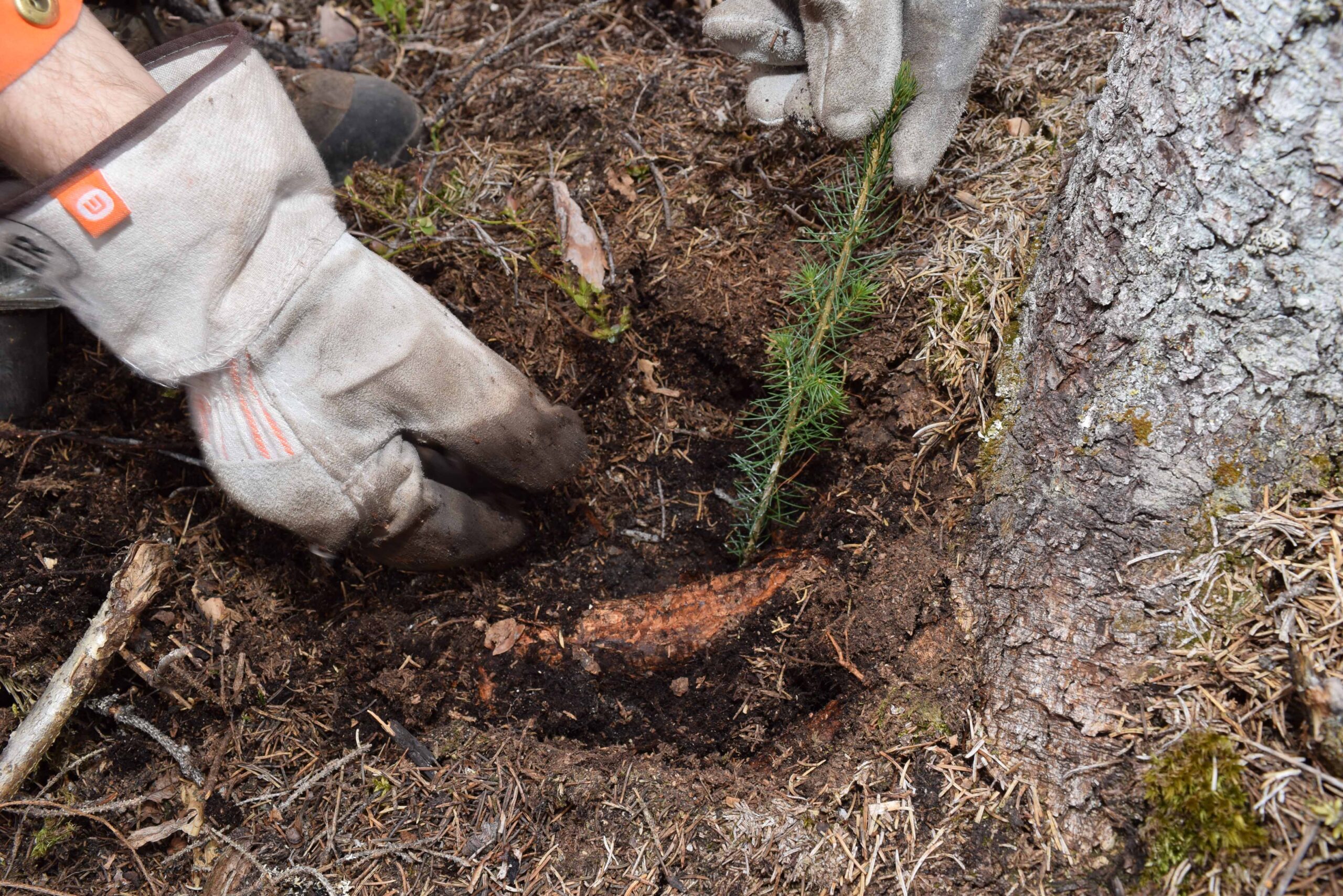 – The plant need protection. I will sette the plant by the stubbe, forklarer Nico, som etter utført sesongarbeid i Norge jobber med skog i Tyskland, Canada og Østerrike.