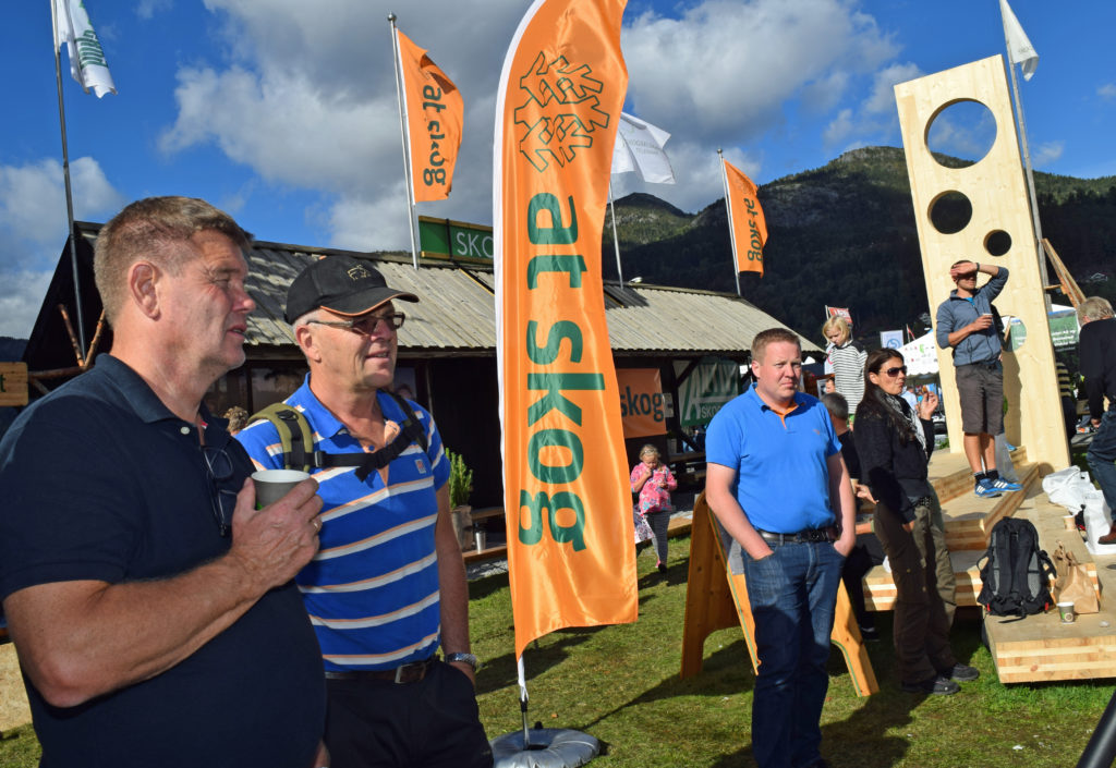 Lørdag ettermiddag fulgte rundt 200 mennesker skogdebatten fra hovedscenen på Dyrskuplassen. Leder av Energi og Miljøkomiteen, Ola Elvestuen (V), Stein Lier-Hansen fra Norsk Industri, Kåre Gunnar Fløystad fra miljøstiftelsen Zero, Olav A. Veum fra Norges Skogeierforbund og Petter Ellefsen fra Vekst i Grenland diskuterte «Det grønne skiftet. Hva venter vi på? Næringa er klar, men politikerne nøler». Heine Skårdal Hagen (3) fra Drangedal droppet skogdebatten til fordel for god utsikt fra hogstmaskinen på Skogtunet.