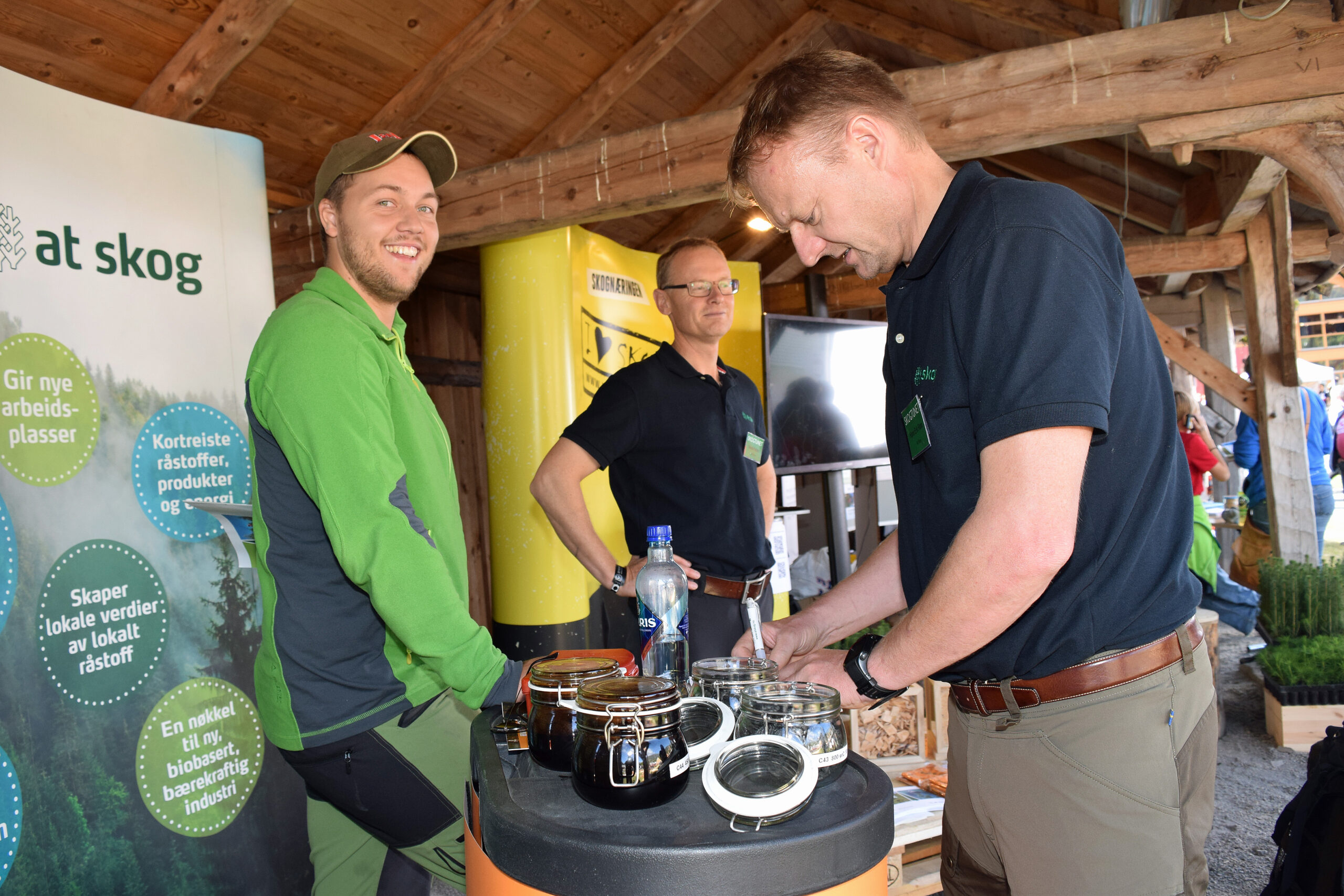 Rekrutteringsprosjektet Velg Skog delte stand med oss. AT Skogs ansatte fikk fortalt om trekull, kalt biokarbon, som kan erstatte fossilt brensel i prosessindustrien. I tillegg fikk mange engasjerte skogeiere en prat om priser, planter og produksjon med fagfolk på AT Skogs stand.