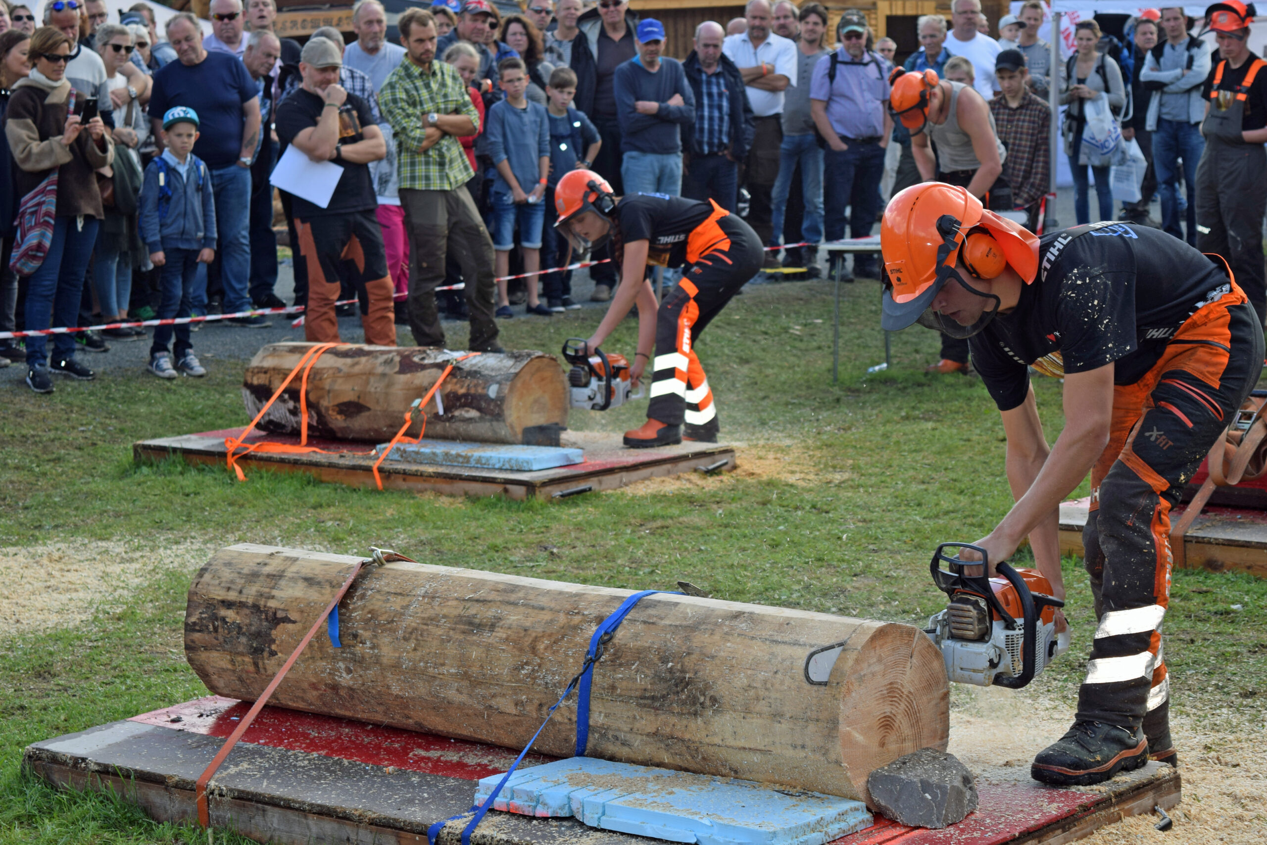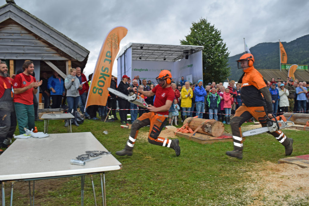 Nome videregående skole avdeling Søve sørget for konkurranser med motorsag to ganger daglig. Folk sto tett i tett på tunet for å oppleve presisjonssaging av nåværende og tidligere elever.